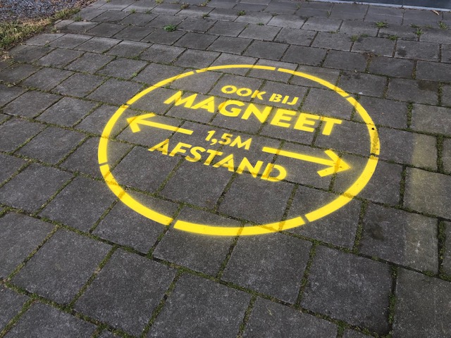 Signing op straat om uw bezoekers buiten te wijzen op de coronarichtlijn